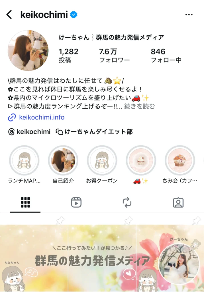 群馬県の観光情報を中心にInstagramにて発信しています。(2025年10月25日現在フォロワー7.6万人)